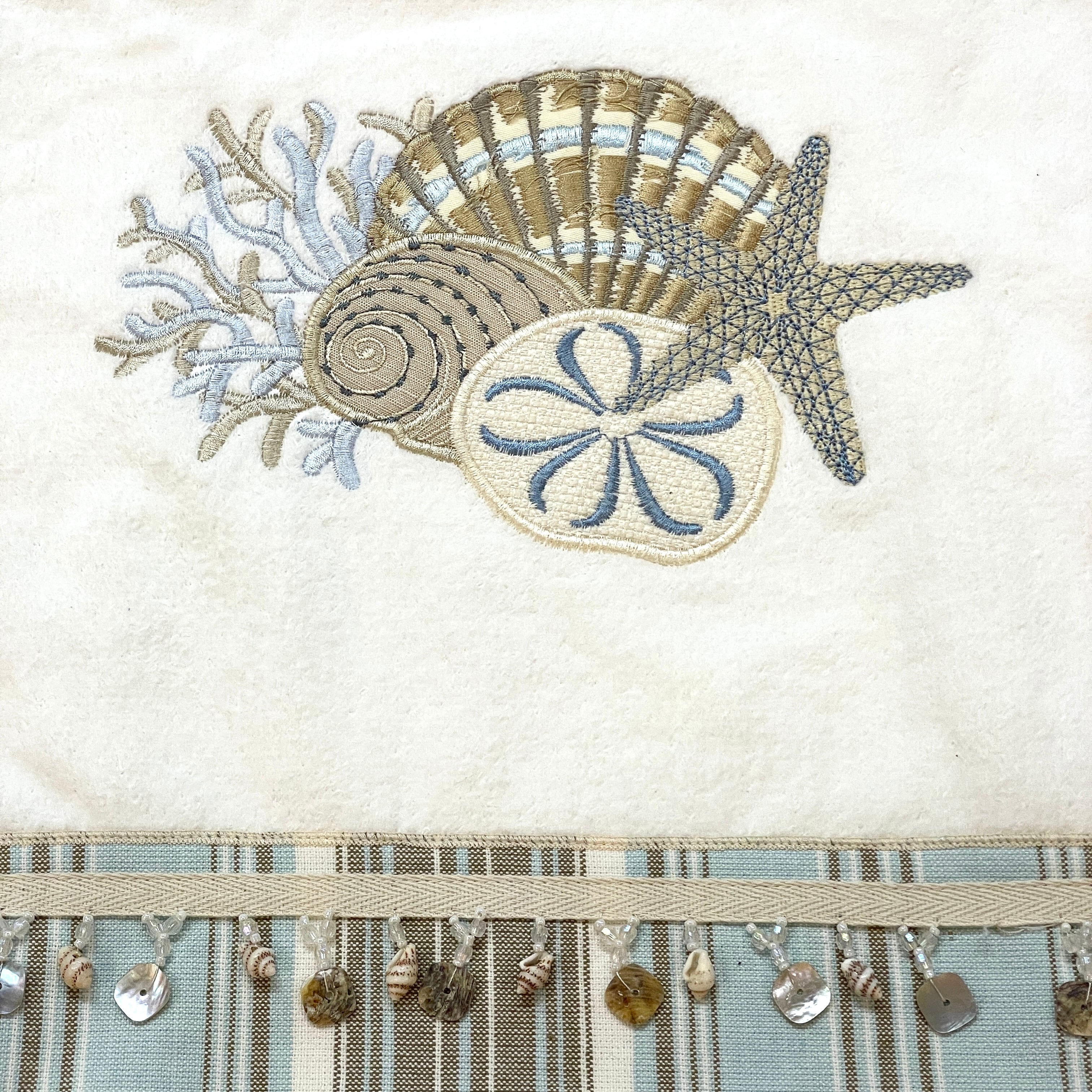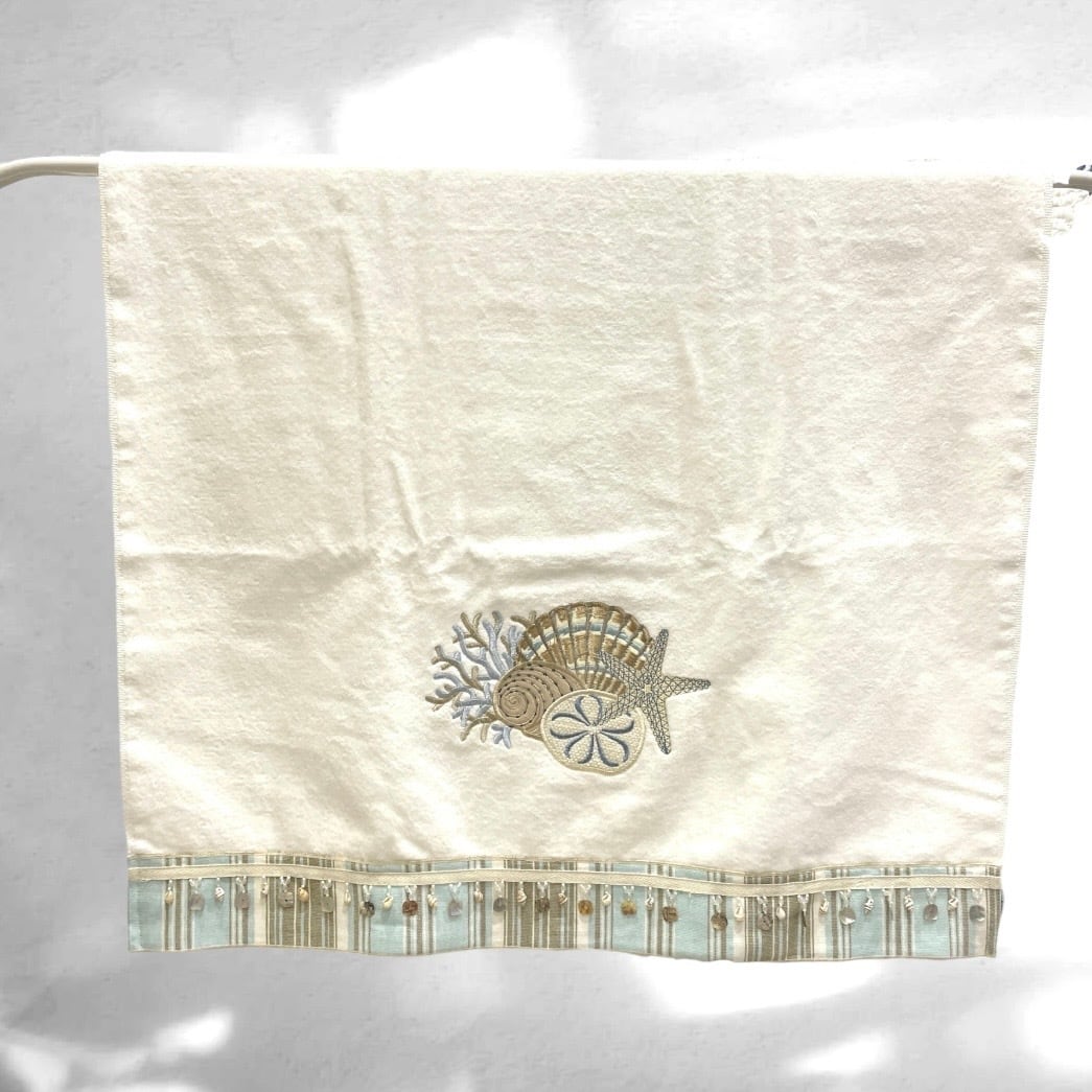 【アウトレット】【avanti】 バスタオル ホワイト ブルー ゴールド 貝殻 シェル ビーズ 刺繍 コットン ハワイ HAWAII 海外品 輸入雑貨 バス 洗面 ビーチ 海 リゾート お祝い ギフト 【送料無料】 mu