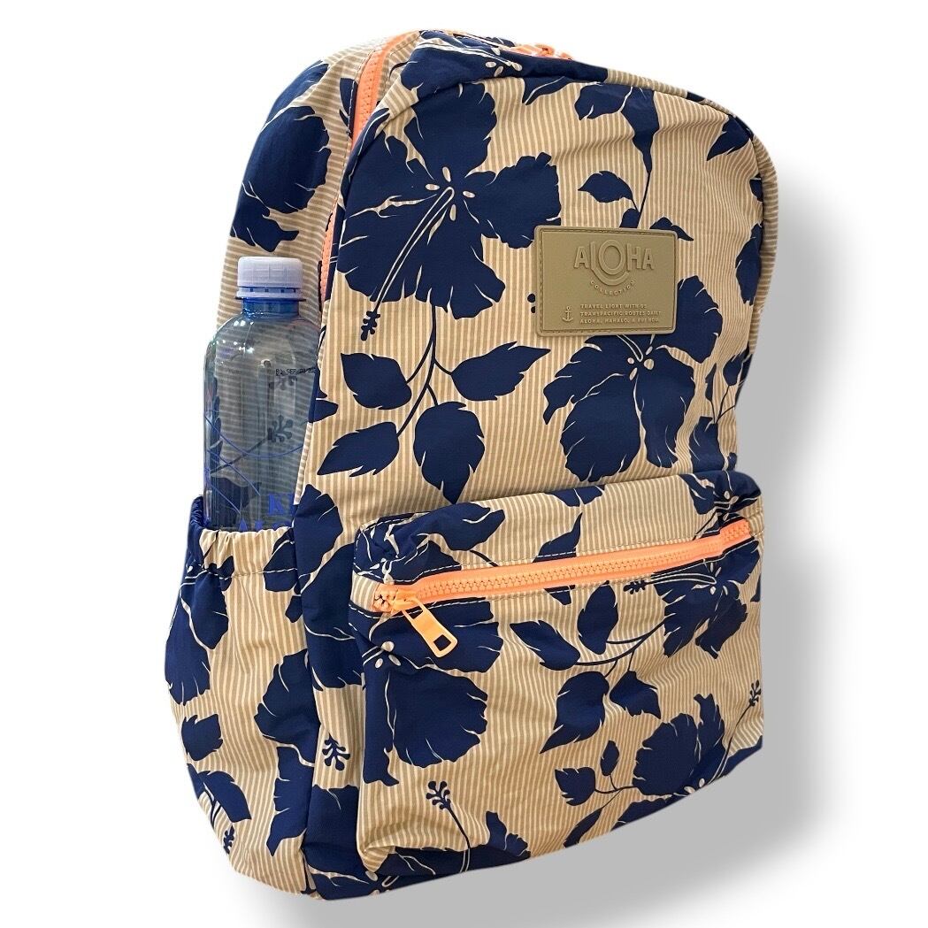 【ALOHA COLLECTION】KEEP IT LIGHT BACKPACK SalinaTinyStripe アロハコレクション ストライプ ベージュ ハイビスカス オレンジ リュックサック リュック 軽量 レディース アウトドア スポーツ お出かけ 旅行 プレゼント 【KOBE三宮 Pua Hawaii】送料無料 mu