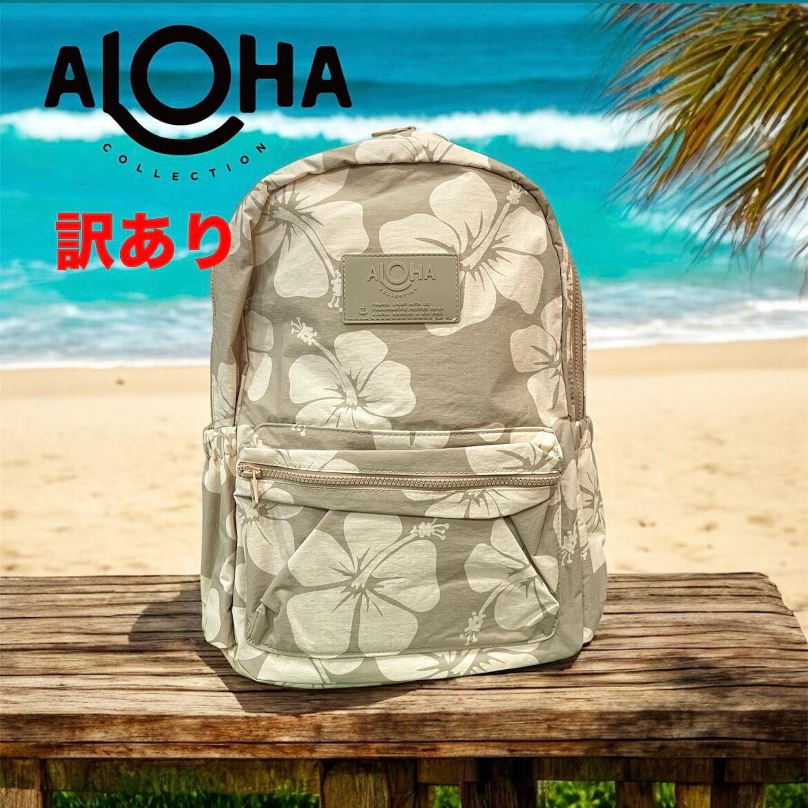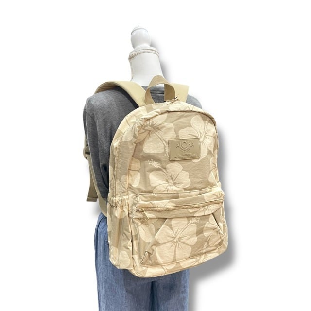【訳あり】【ALOHA COLLECTION】KEEP IT LIGHT BACKPACK アロハコレクション ベージュ ハイビスカス バッグ リュックサック リュック 軽量 レディース アウトドア スポーツ お出かけ 旅行 プレゼント 【KOBE三宮 Pua Hawaii】送料無料 mu