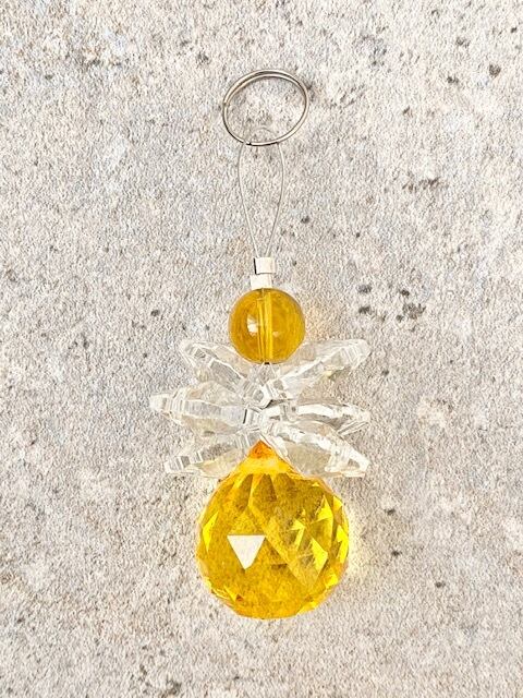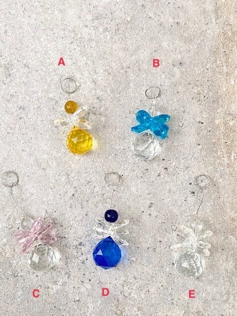 サンキャッチャー 天使 羽 ストラップなし 車 ミラー スマホ 携帯電話 バッグ ポーチ クリスタルガラス ビーズ レインボーメーカー イエロー ブルー クリア 透明 風水 開運 浄化 厄除け ヒーリング 癒し パワーチャージ リラックス ギフト プチギフト プレゼント