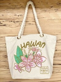 鮮やかなお花柄とHAWAIIの大きな文字♪カラフルな絵柄がポイントです。