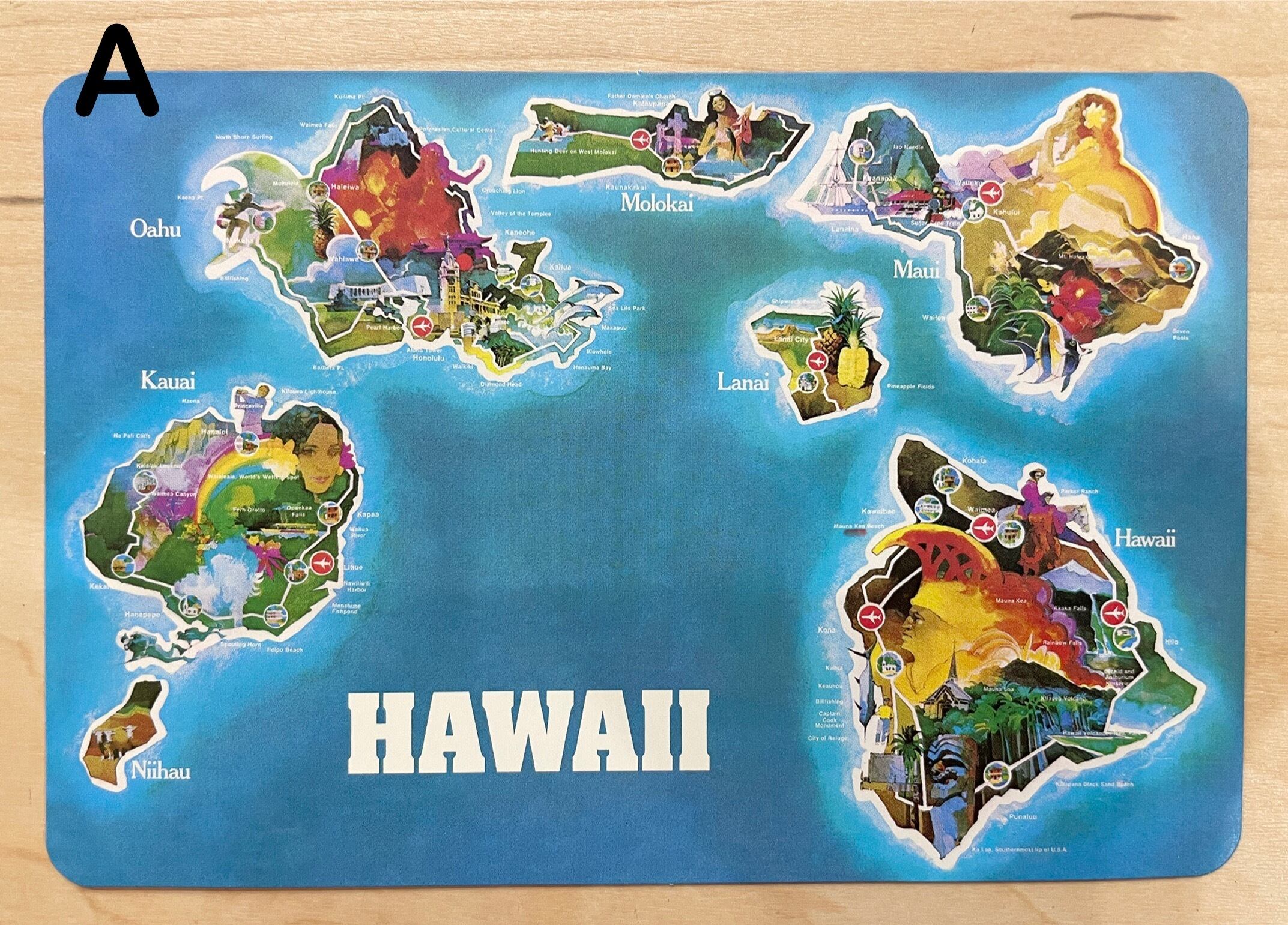 懐かしさを感じるハワイアンアートがプリントされたポストカードです。