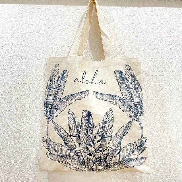 【SoHa Living】ソーハリビング リーフ柄 トートバッグ ホワイト ネイビー 大きめサイズ マチなし トート トートバッグ キャンバス レディース 鞄 旅行 ビーチ レッスン ショッピング ハワイ ハワイアン雑貨 HAWAII アロハ ギフト プレゼント