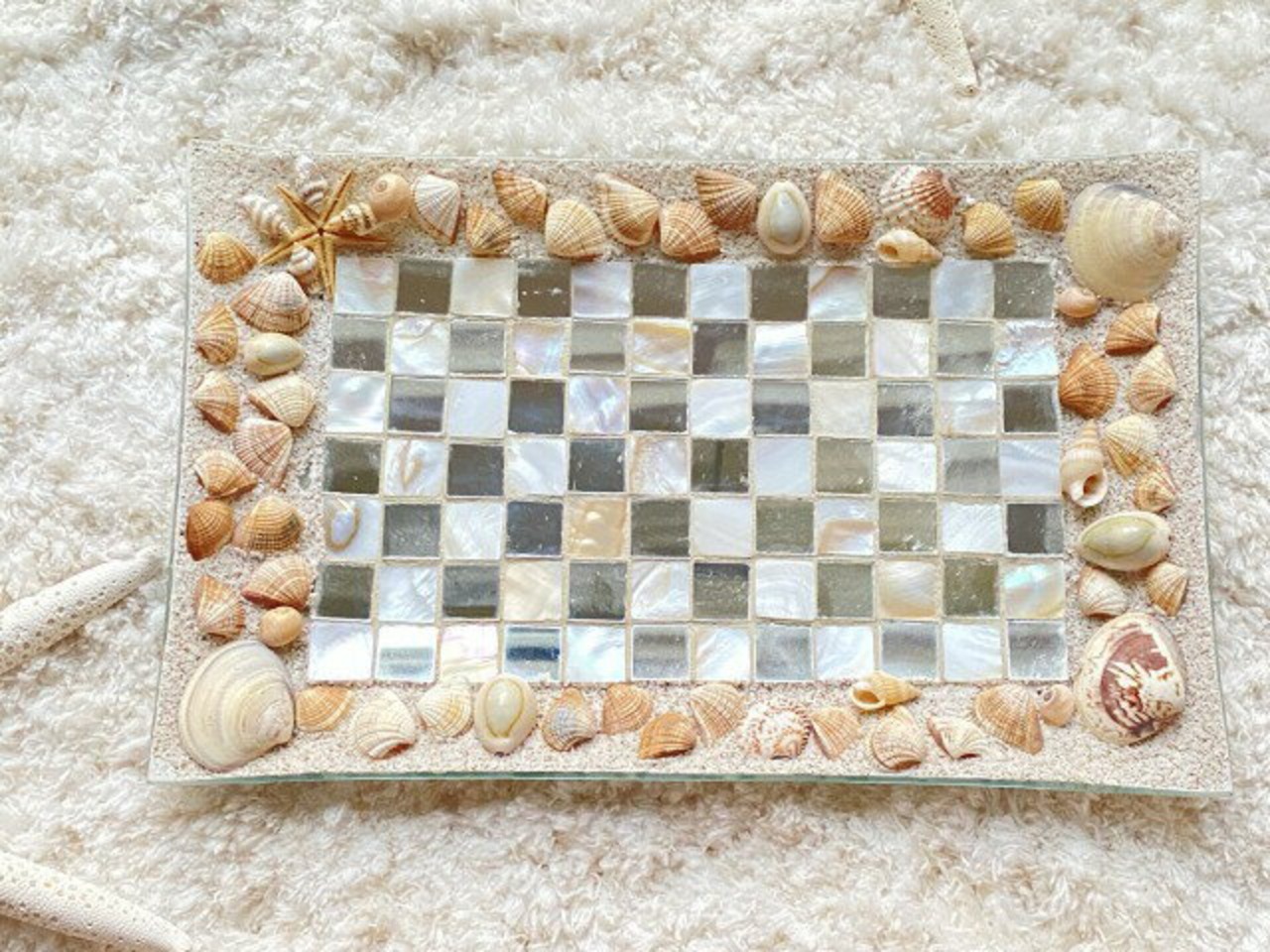 シェルお皿 ガラス トレイ トレー 光沢 オーロラ シェル 貝 貝殻 巻貝 トレー プレート お皿 マルチトレイ キー キャッシュ アクセサリー アクセサリートレー 鍵 キー キートレー 小物 収納 小物入れ インテリア ハワイアン雑貨 HAWAII ギフト プレゼント