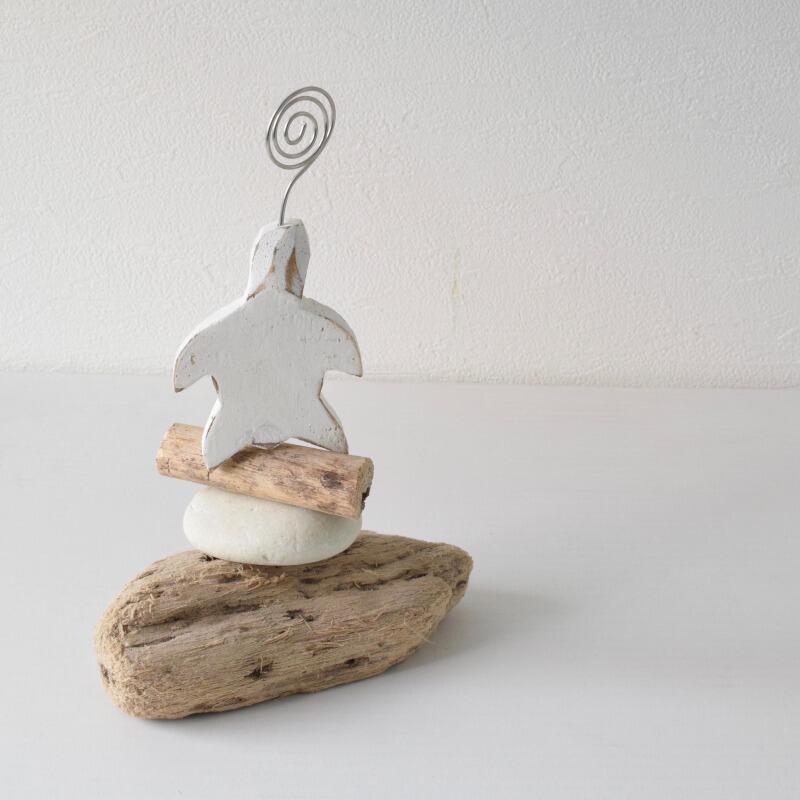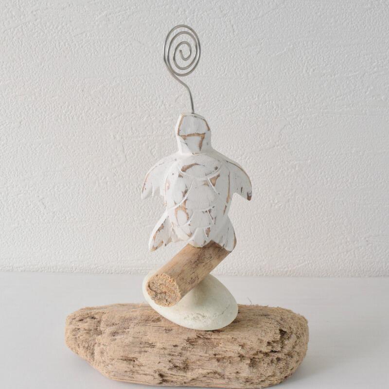 インテリア カメ ホヌ フォトクリップ メモクリップ ハワイ ハワイアン雑貨 木 木製 白 石 海外雑貨 輸入雑貨 プレゼント 西海岸風 ビーチ風 マリン系 オシャレ かわいい