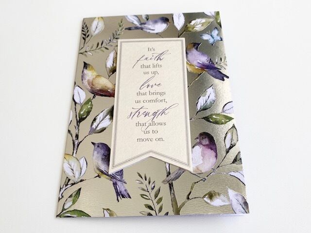 シルバーに水彩画調の鳥と木々がプリントされた上品なカードです!