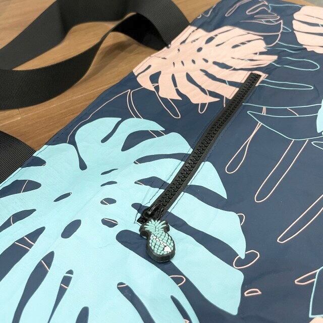 【ナイロンバッグ】ハワイアン柄 ナイロンバッグ ハワイ HAWAII モンステラ ネイビー ファスナー 大きめ 海 ビーチ 夏 サマー ギフト プレゼント