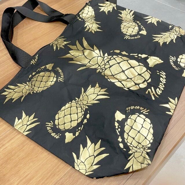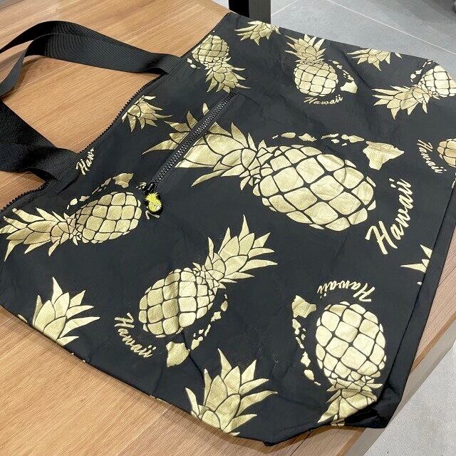 【ナイロンバッグ】ハワイアン柄 ナイロンバッグ ハワイ HAWAII ALOHA パイナップル ブラック ファスナー 大きめ 海 ビーチ 夏 サマー ギフト プレゼント