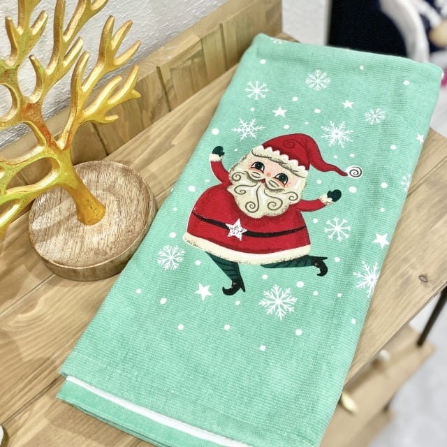 ひょうきんなサンタクロースがデザインされたキッチンタオルが入荷いたしました。