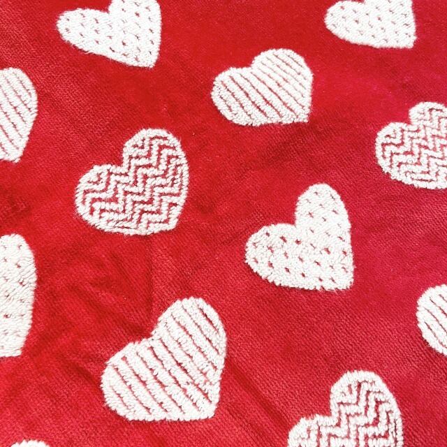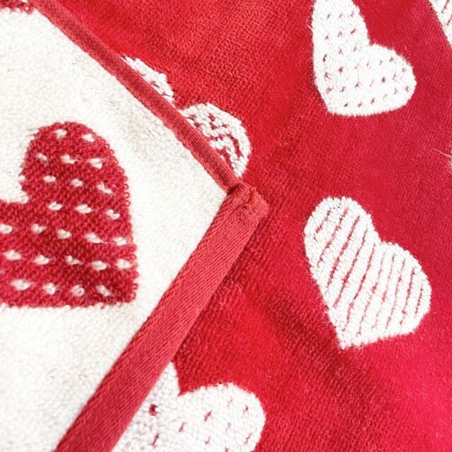 バスタイムも気分があがる、ハートいっぱいのふわふわタオルです。