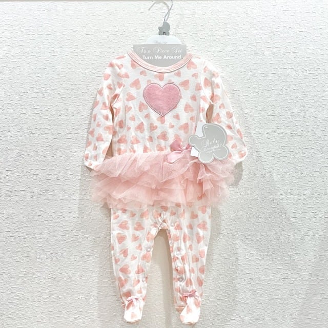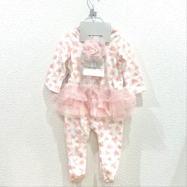【baby essentials】ロンパース 髪飾り付き ハート柄 シンプル ピンク 女の子 ボディスーツ ベビー 赤ちゃん ガール ベビー服 ベビーウェア インポート ギフト プレゼント 誕生日 出産祝い こどもの日 5kg~7kg