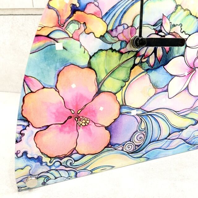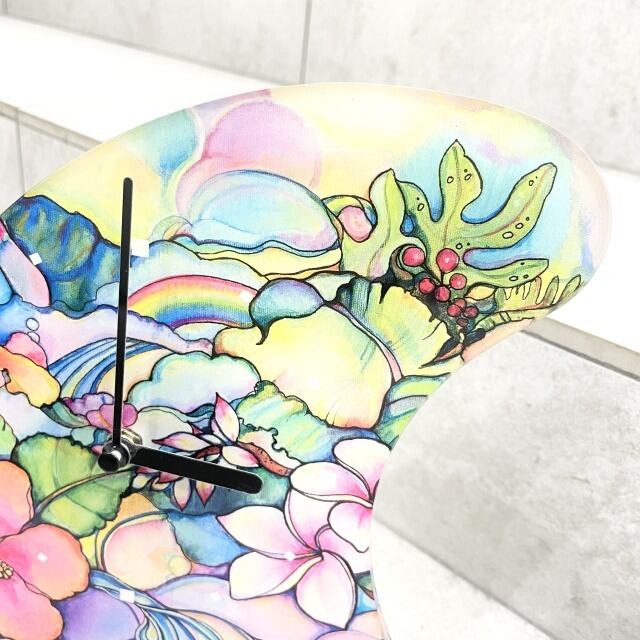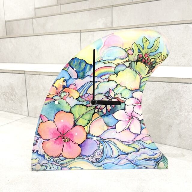 【Colleen Wilcox】フィン型 クロック 時計 壁掛け 置き型 花柄 リーフ 波 hawaii ハワイ