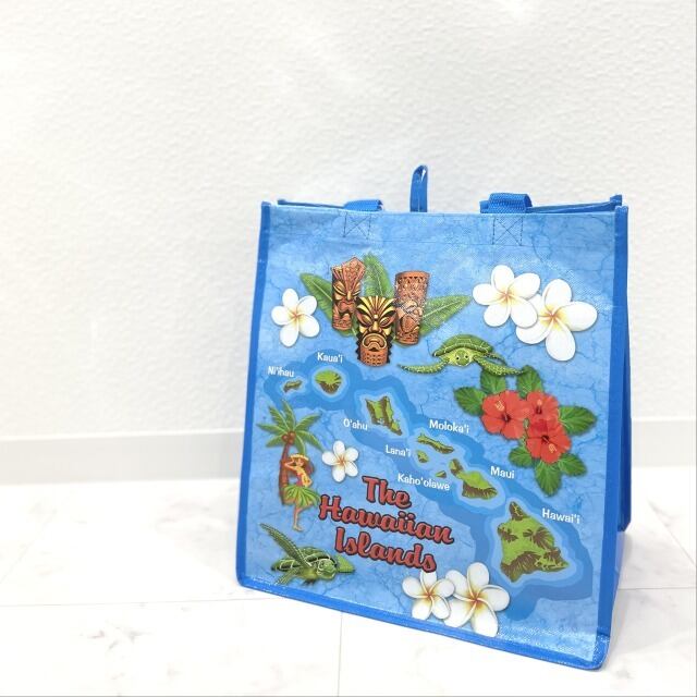 【EARTA BUDDIES】【エコバッグ】 トートバッグ ショッピングバッグ ブルー マチあり 底板付き ハワイ ハワイアン 海外品 海外雑貨 プレゼント