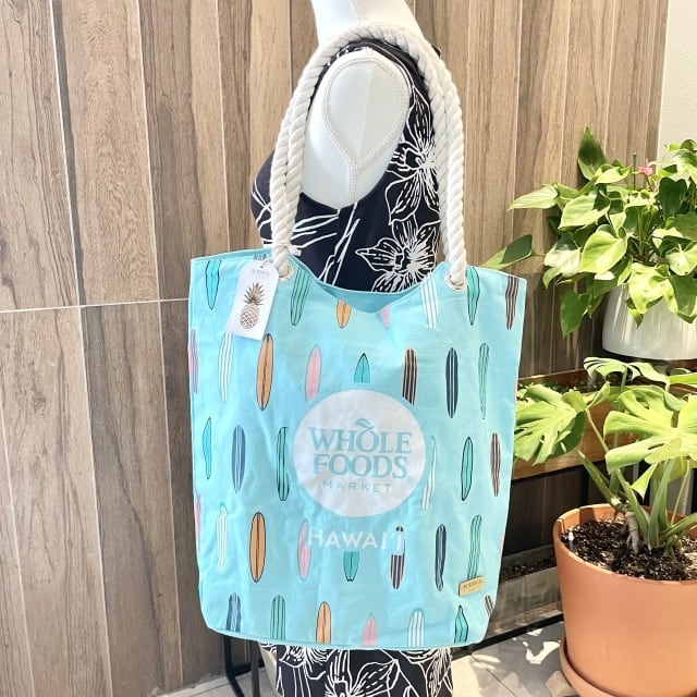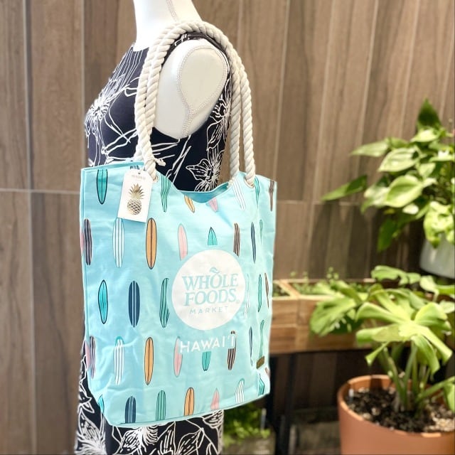 WHOLE FOODS MARKET ホールフーズ サーフボード サーフィン トートバッグ エコバッグ ブルー HAWAII おしゃれ ハワイ バッグ オーガニック コットン100% ハワイアン雑貨 海外品 ハワイ限定 プレゼント