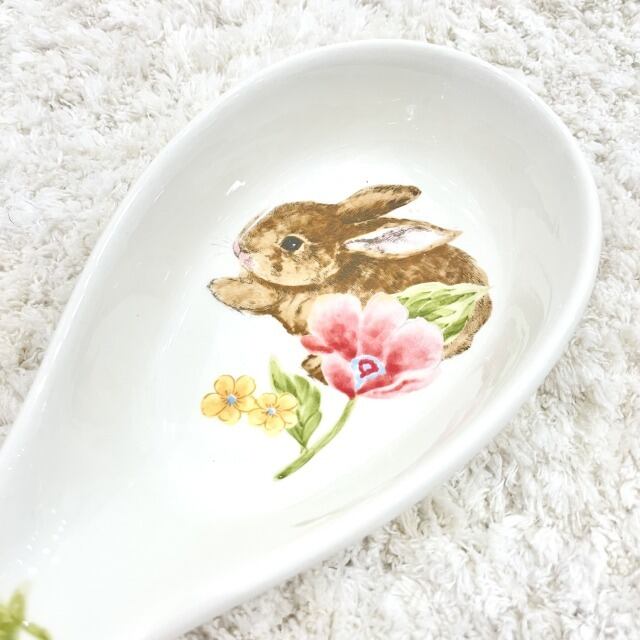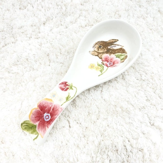 【Max cera】スプーン型 スプーンレスト プレート インテリアトレー ウサギ 花柄 食器 陶器 海外品 ハワイ HAWAII 輸入雑貨 キッチン キッチン用品 インテリア 置物 プレゼント