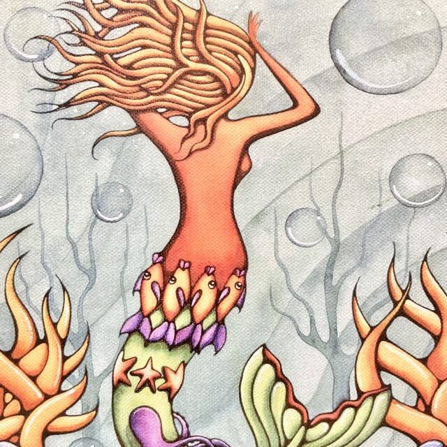 海を泳ぐマーメイドの鮮やかなアート作品♪