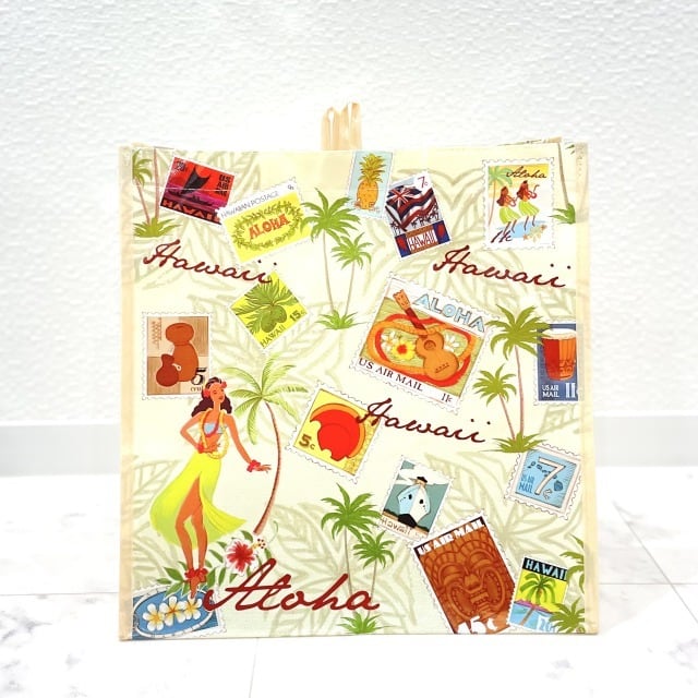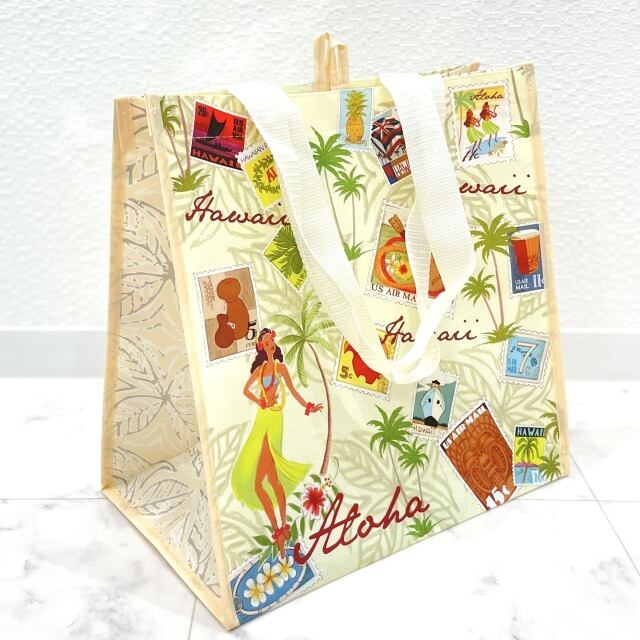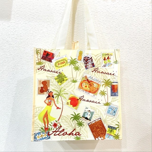 【トートバッグ】ビニール素材 エコバッグ 買い物バッグ ショッピングバッグ マチあり マチ付き クリーム色 HAWAII ハワイ ハワイアン 海外品 海外輸入 ハワイアン雑貨 プチギフト