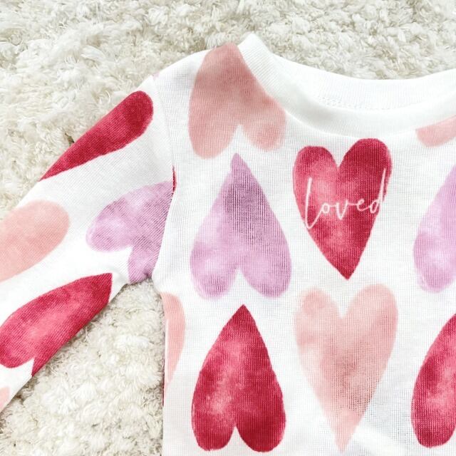 【オーガニック】【RABBIT+BEAR】ベビー服 上下セット セットアップ 長袖 長ズボン オーガニックコットン ベビー 12ヶ月 女の子 ハート柄 海外輸入 ピンク HAWAII 海外ブランド お祝い プレゼント