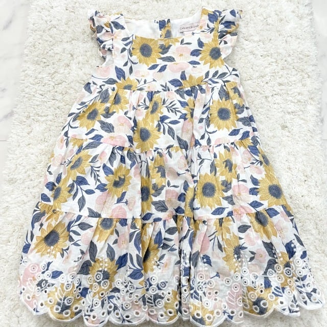 【CATHERINE MALANDRINO】ベビー キッズ ワンピース ポーチ付き 24M 24ヶ月 2歳 女の子 ガール 花柄 ひまわり 夏 夏服 サマー お出かけ ハワイ 海外品 輸入 海外輸入 プレゼント お祝い