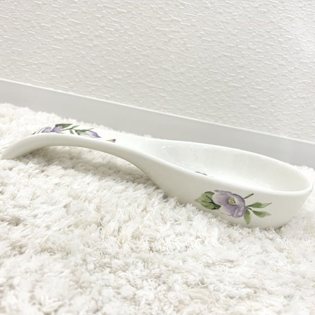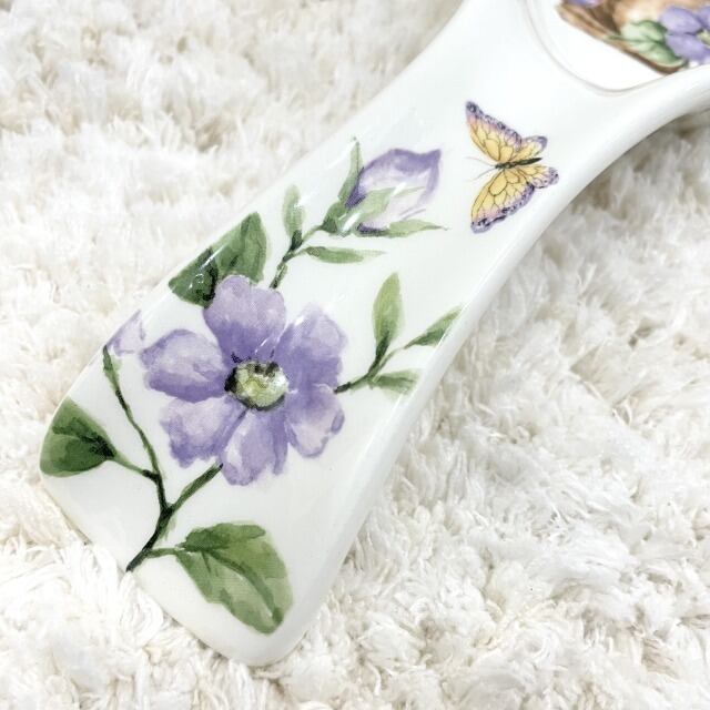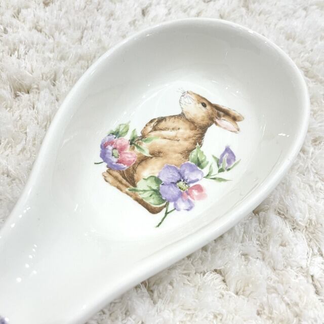 【Max cera】スプーン型 スプーンレスト プレート インテリアトレー ウサギ 花柄 パープル 紫 食器 陶器 海外品 ハワイ HAWAII 輸入雑貨 キッチン キッチン用品 インテリア 置物 プレゼント