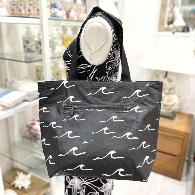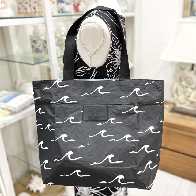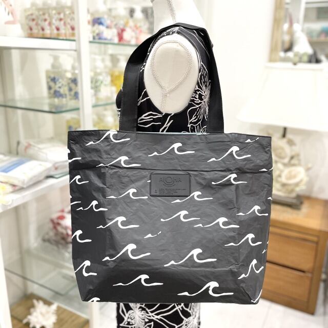 【ALOHA COLLECTION】アロハコレクション トートバッグ DayTripper ファスナー ブラック 黒 ロゴ 波 水色 ハワイアン 海 プール ビーチ 撥水 ハワイ プレゼント
