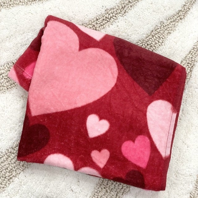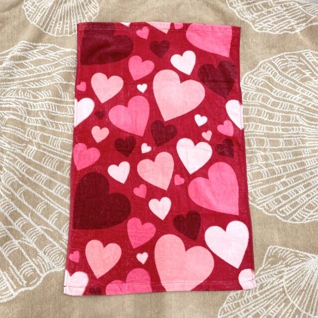 ハート柄が散りばめられたデザインの可愛いタオルが入荷いたしました。