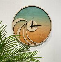 【Coco Nene】 時計 壁掛け Gradient Wave Layered Clock ヤシの木 波 ALOHA ハワイ 海 砂浜 木製 hawaii ハワイ インテリア ハワイ製