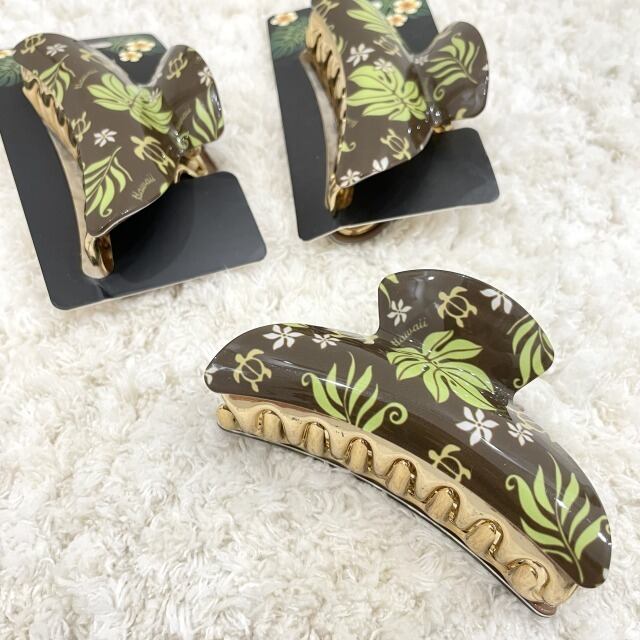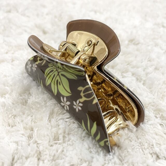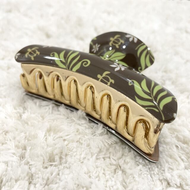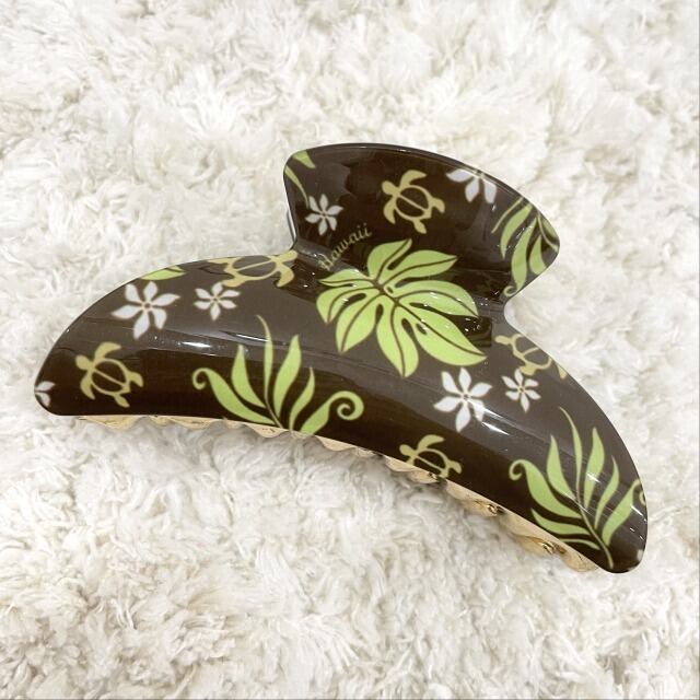 【Aloha ave】バレッタ ヘアクリップ 髪どめ ヘアアクセサリー ブラウン グリーン ゴールド ハワイアン モンステラ ホヌ HAWAII ハワイ 輸入品 海外輸入 アクセサリー プレゼント プチギフト