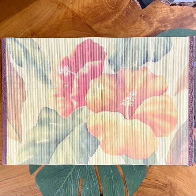 【IslandHermitage】 ランチョンマット ハイビスカス バンブー 竹 すだれ 卓上 キッチン キッチンファブリック おしゃれ インテリア夏 ハワイ HAWAII 海外 海外輸入 ハワイアン雑貨