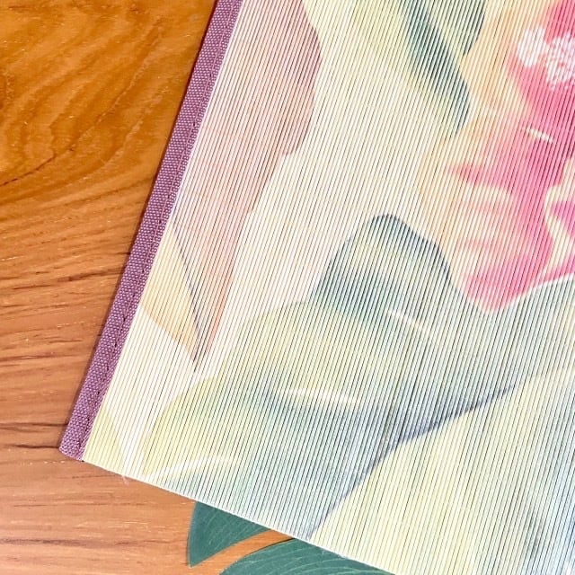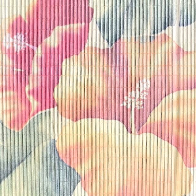 大きなハイビスカスがおしゃれな夏にぴったりのすだれ風ランチョンマットです。