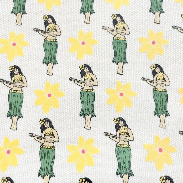【HAWAII Collection】ポーチ 化粧ポーチ 小物入れ エコバッグ フラガール ウクレレ パイナップル ハワイ ショッピング エコ 使いやすい ハワイアン雑貨 海外雑貨 プレゼント マチあり チャック ファスナー カジュアル 波 ベージュ イエロー 軽い