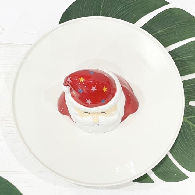 サンタがプレートの真ん中に埋まっている斬新なデザインのクリスマス用のプレートです。