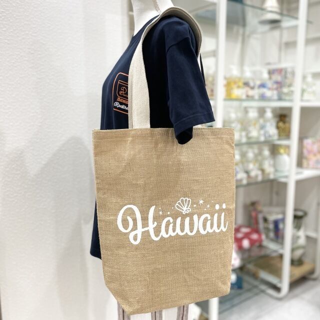 【ジュートバッグ】トートバック Hawaii バック シェル ロゴ ハンドバッグ サマーバッグ ビーチバッグ ショッピングバッグ ベージュ 海 プール ビーチ 長方形 底マチ ジュート