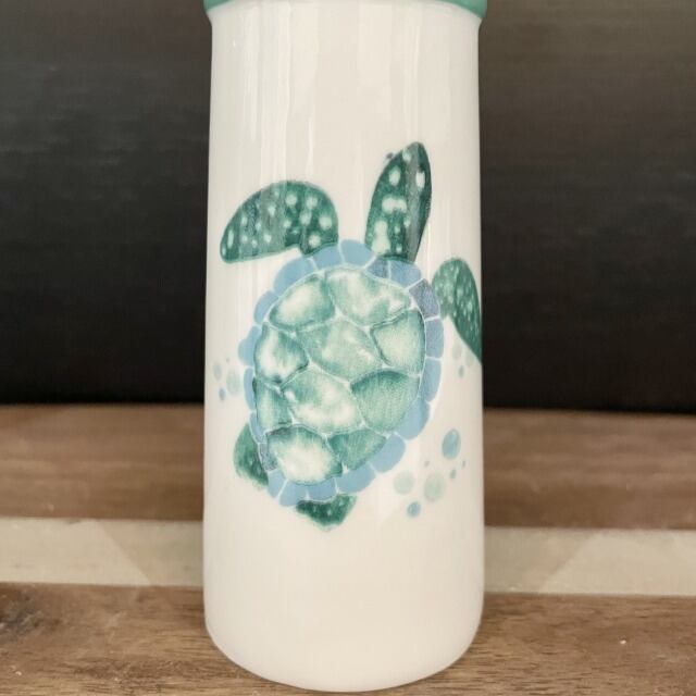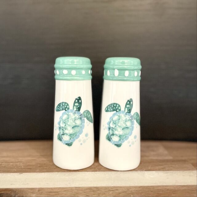 【調味料入れ】調味料容器 塩 こしょう ソルト ペッパー 2個セット 2つ穴 3つ穴 ウミガメ うみがめ ホヌ ホワイト グリーン 陶器 割れ物 入れ物 キッチン インテリア 海外輸入 海外 置物 ハワイ HAWAII プレゼント