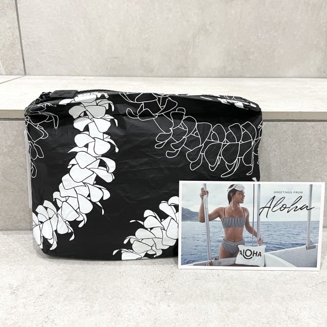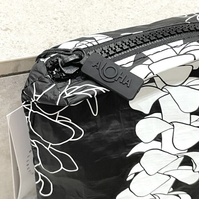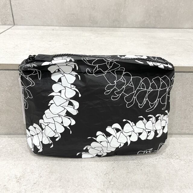 【ALOHA COLLECTION】アロハコレクション スモールポーチ ビーチポーチ 化粧ポーチ ブラック ホワイト ロゴ 海 プール ビーチ 撥水 レイ柄 ファスナー ハワイ プレゼント