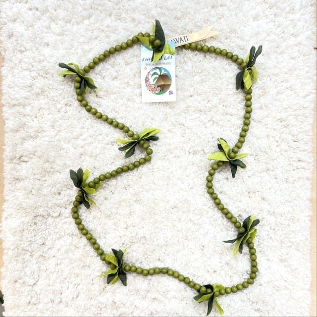 カウアイ島の山に生息する樹木の実「モキハナ」のレイでステージをより華やかに♪