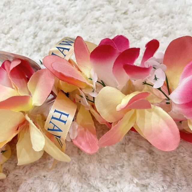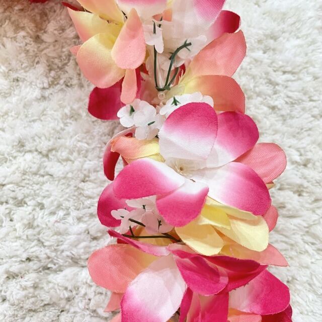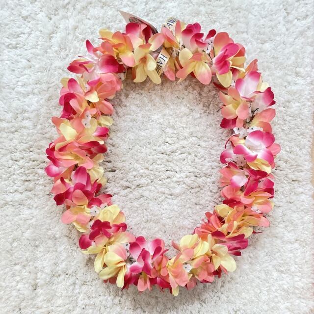ピンクと黄色の花の色味が可愛いレイを入荷しました!