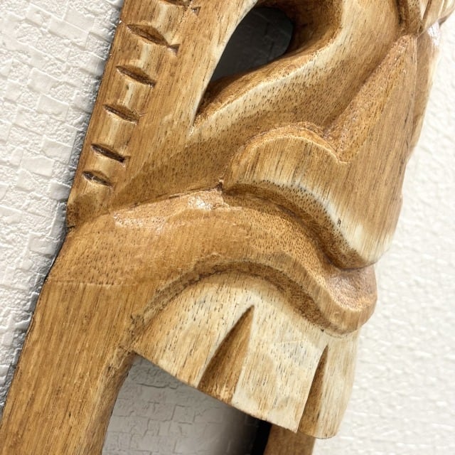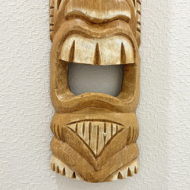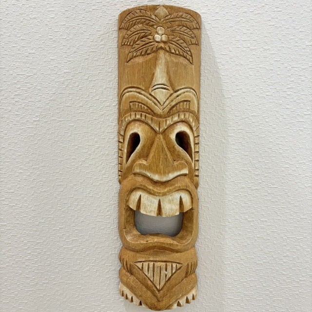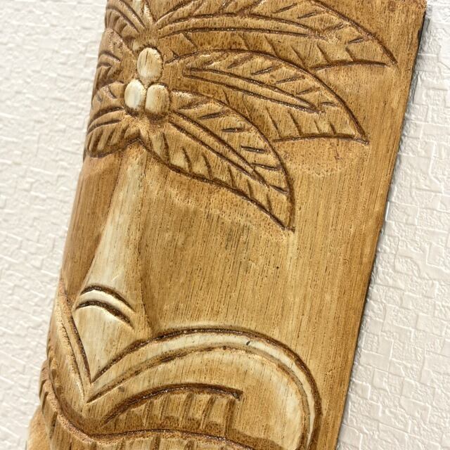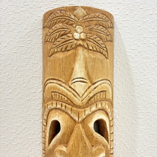 【TIKI】木彫り ティキ型 壁掛け ハワイ ハワイアン インテリア アート 装飾 飾り アンティーク調 伝統 古典的 ティキ ヤシの木 守り神 贈り物
