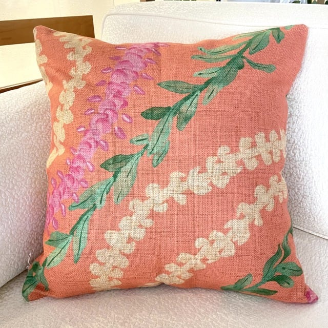 【SoHa Living】ソーハリビング クッションカバー Lei柄 プアケニケニ オレンジ グリーン イエロー ナチュラル リネン素材 ハワイ インテリア ハワイアン雑貨 HAWAII アロハ ギフト プレゼント