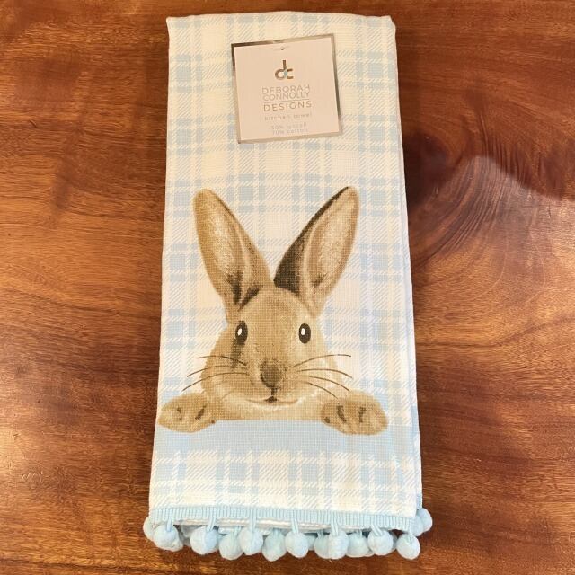 【DEBORAHCONNOLLY】キッチンタオル 2枚組 2枚セット ウサギ イースター チェック ブルー 可愛い ポンポン キッチン用品 タオル コットン リヨセル 海外品 海外輸入 プレゼント ギフト 引っ越し お祝い mu