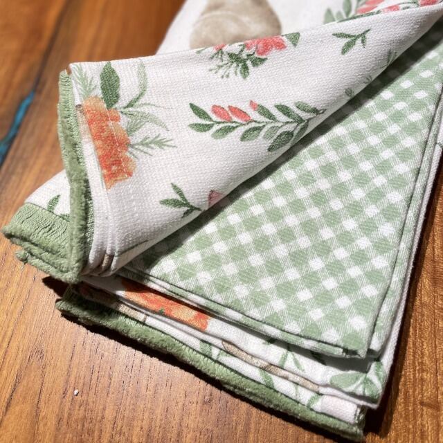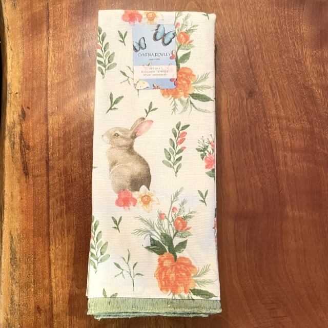 【CINTHIAROWLEY】キッチンタオル 3枚組 3枚セット ウサギ イースター チェック モスグリーン 可愛い 花 フリンジ キッチン用品 タオル コットン100% 海外品 海外輸入 プレゼント ギフト 引っ越し お祝い mu