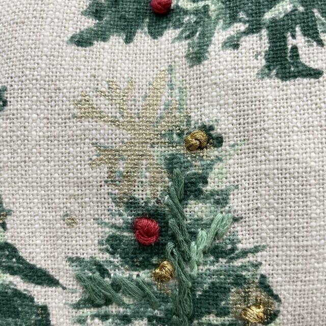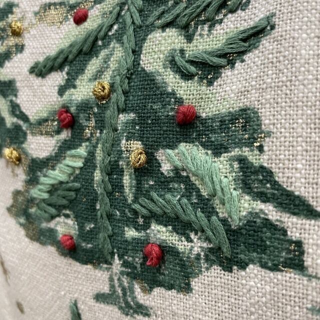 【Christmas】クッション 中身付き 高級感 もみの木 手刺繍 ポリエステル 羽毛 フェザー クリスマス グリーン レッド ゴールド ツリー オシャレ ヴィンテージ風 大きめ スノーフレーク 海外 インテリア ku