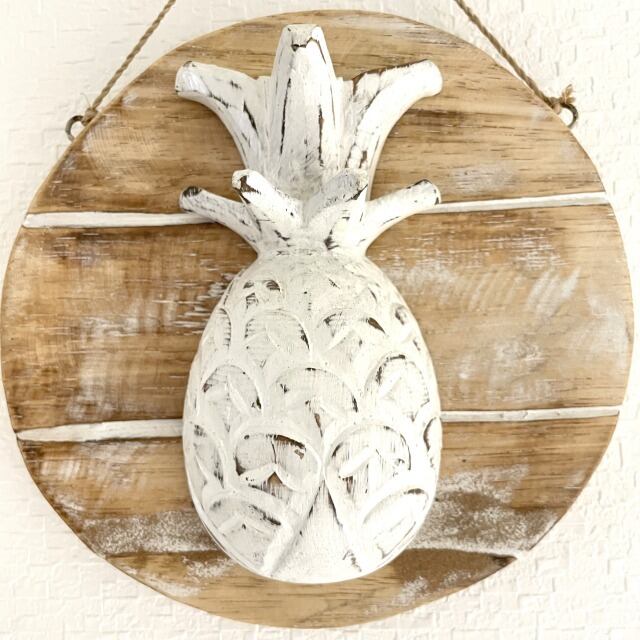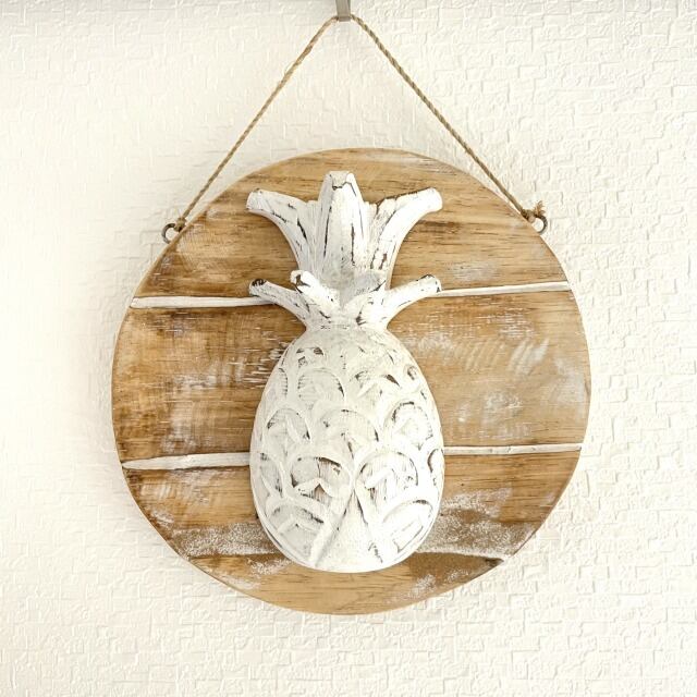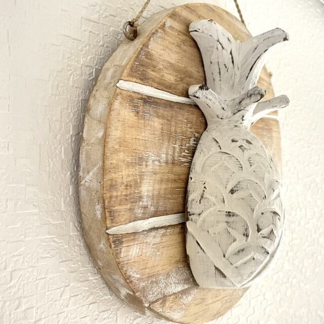 【壁掛け】木製 パイナップル ハワイアン雑貨 ナチュラル Hawaii 木目 輸入品 海外雑貨インテリア プレゼント 贈り物 お引越し祝い mu