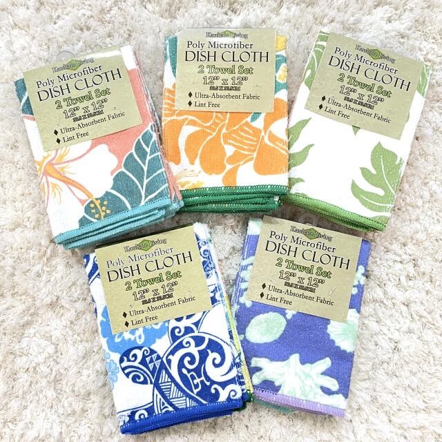 【Kauhale Living】【キッチンクロス】ハワイアン 2枚セット 2枚組 ふきん ハワイアン柄 ハイビスカス柄 グリーン ホワイト マイクロファイバー キッチン用品 海外品 海外雑貨 輸入雑貨 ギフト プレゼント