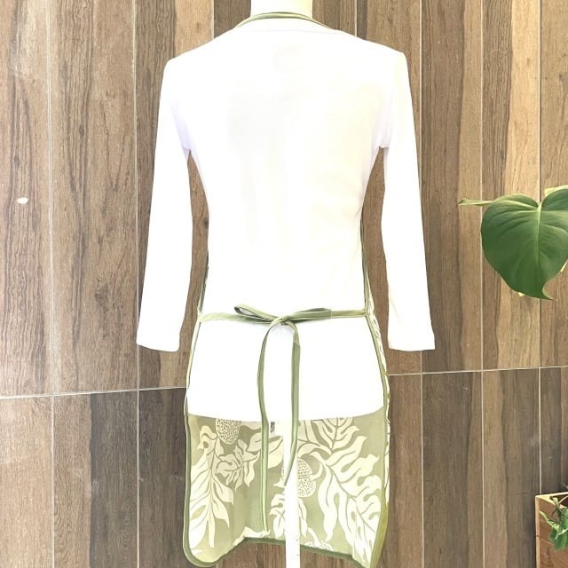 【Kauhale Living】【エプロン】ハワイ ファブリック ハワイアン柄 パンの木 Ulu グリーン ホワイト 100%ポリエステル 防汚コーティング 海外 海外輸入 プレゼント mu