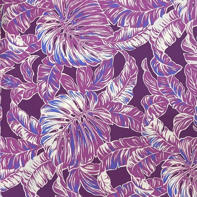 綺麗なパープル系、モンステラやティリーフがプリントされたにハワイアンなデザイン♪