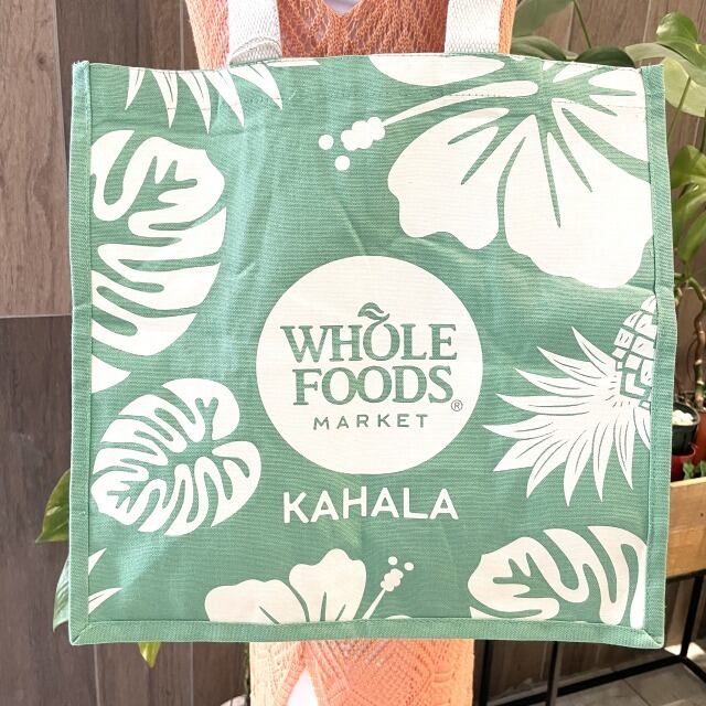 【WHOLE FOODS MARKET】ホールフーズ トートバッグ KAHARA エメラルドグリーン モンステラ ハイビスカス パイナップル おしゃれ ハワイ バッグ 100% オーガニックコットン ハワイアン雑貨 カバン 海 布 ハワイ直輸入 お土産 ビーチ mu