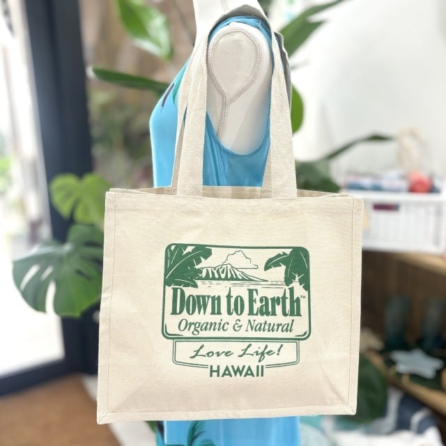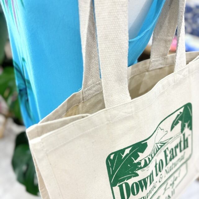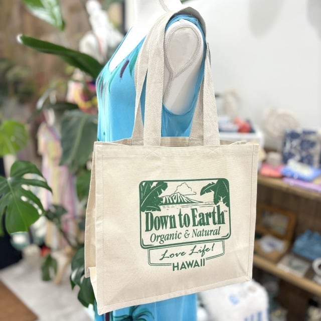 【Down to Earth】トートバッグ バッグ キャンパストート ホワイト グリーン ロゴ マチ ハワイ HAWAII ハワイアン 海外品 海外輸入 ファッション カバン おしゃれ ナチュラル プレゼント
