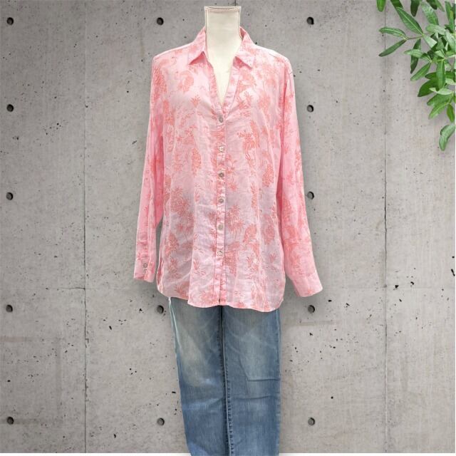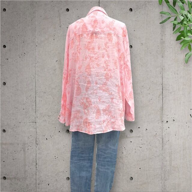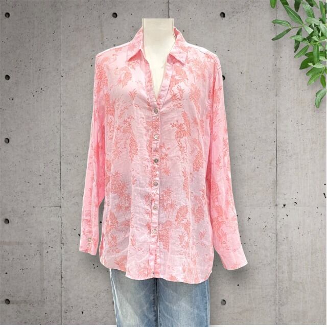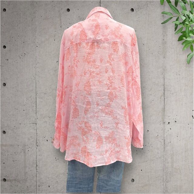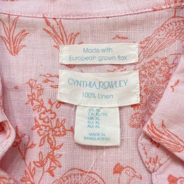 【CYNTHIA ROWLEY】【オーバーブラウス】リネン100% ロング ブラウス USXL トロピカル サーモンピンクレディース シャツ インポート HAWAII ハワイ 海外輸入 mu