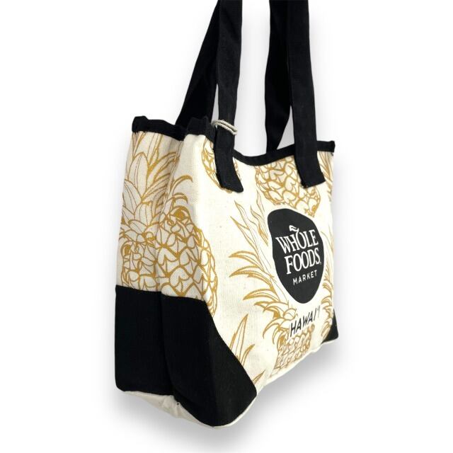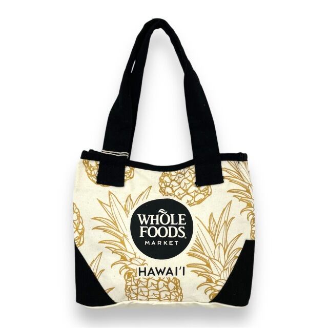 【WHOLE FOODS MARKET】ホールフーズ ミニトートバッグ バッグ ホワイト ゴールド ブラック ハワイアン柄 パイナップル ハワイ HAWAII ハワイ限定 サブバッグ プレゼント ギフト